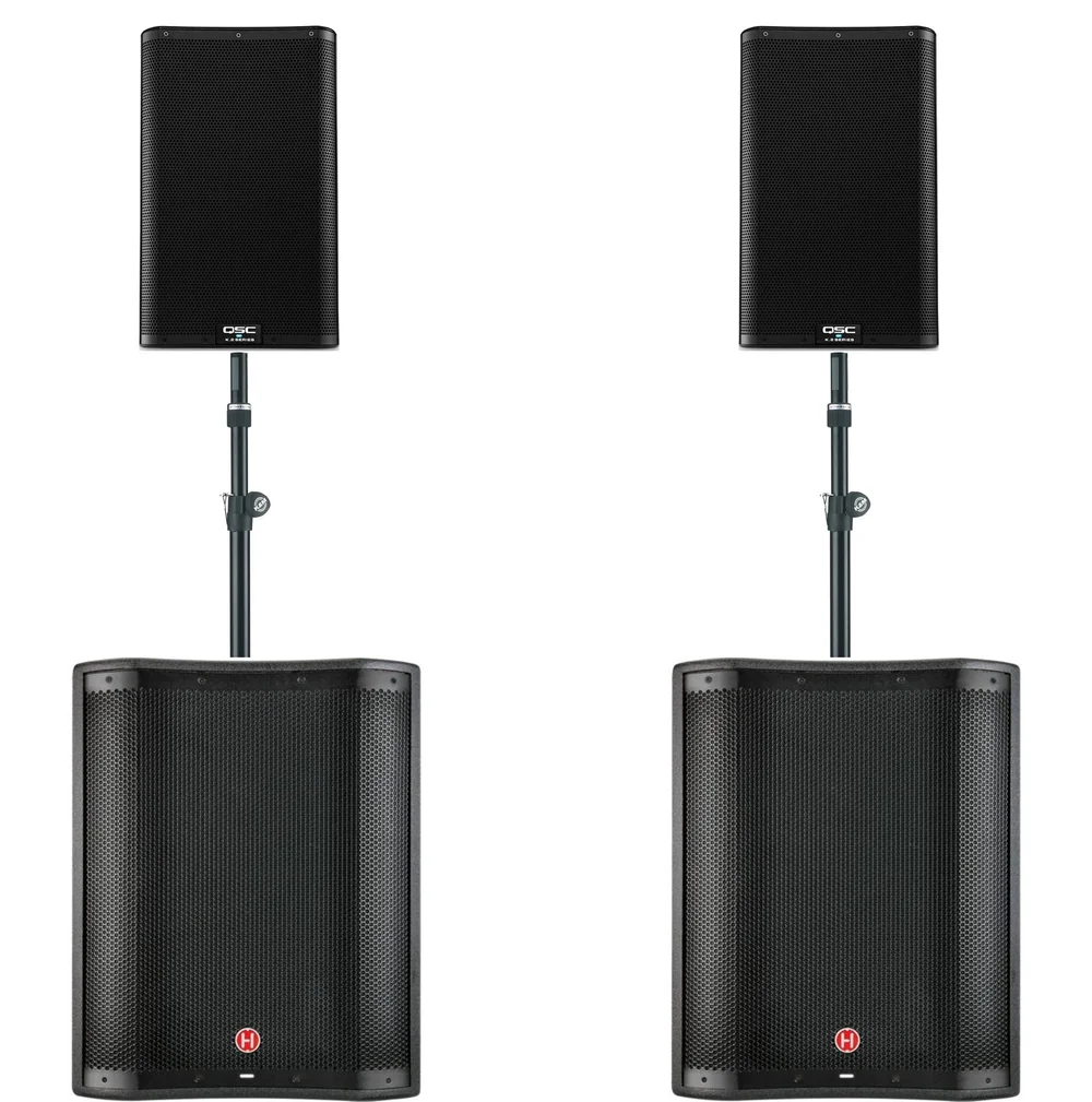 Harbinger Analog 12-channel l1202FX mixer with 4 microphone pre-amps.