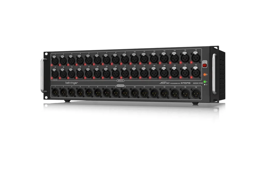 Rack-mounted Behringer S32 48-channel Audio Snake.